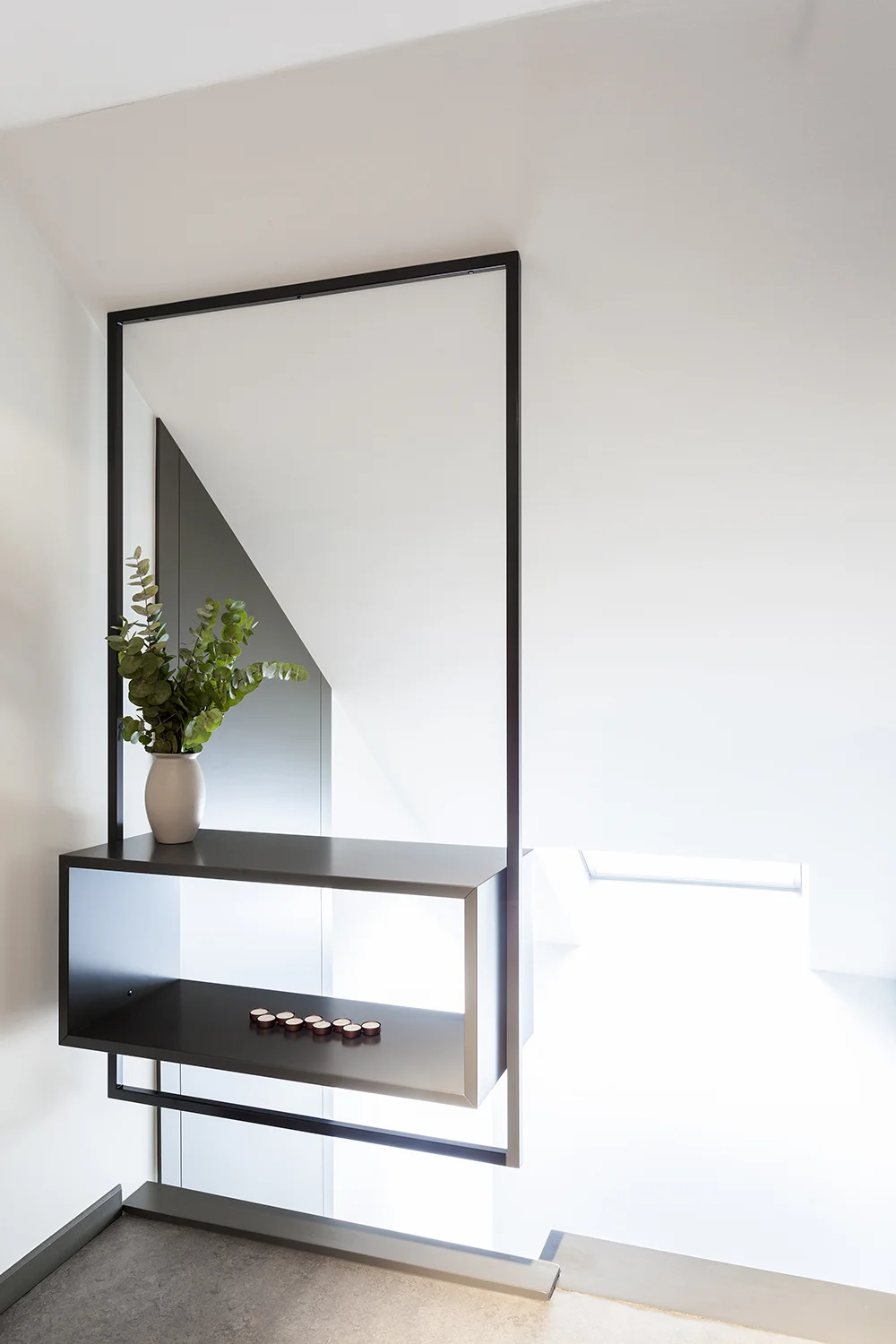 De centrale en logge trapleuning met borstwering werd vervangen door architecturale elementen voor extra sfeer.